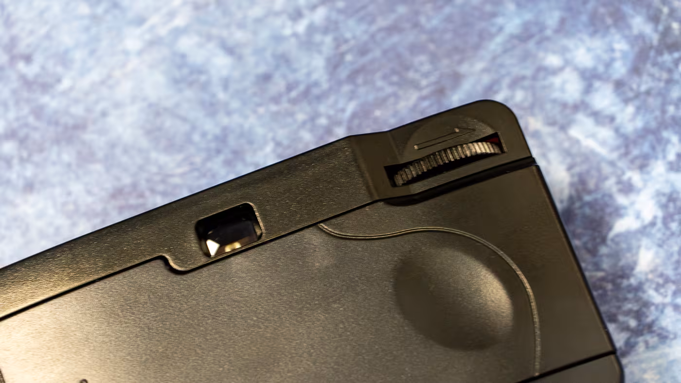 The optics are as simple as it gets: a single-element 31mm fixed-focus lens at f/10, with a shutter speed locked at 1/120 second. The images come out sharp enough in good light, but poor lighting can be a challenge. The built-in flash capacitor is 70µF, enough for most indoor scenarios but not powerful enough for night outdoors. The viewfinder captures about 70% of the actual frame, so expect some margin around your shot.