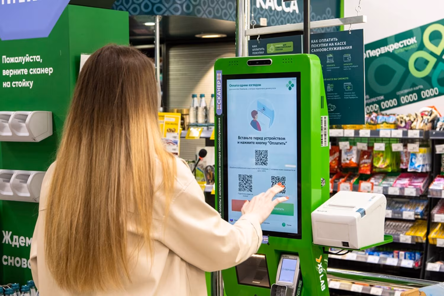 Shoppers commonly use biometric payments in outlets like Krasny & Bely (Red & White), VkusVill, Bristol, Fix Price, Lenta, Spar, and April pharmacies. Top chains like Pyaterochka and Perekrestok offered facial payment terminals in 4,100 stores nationwide by the end of 2025.