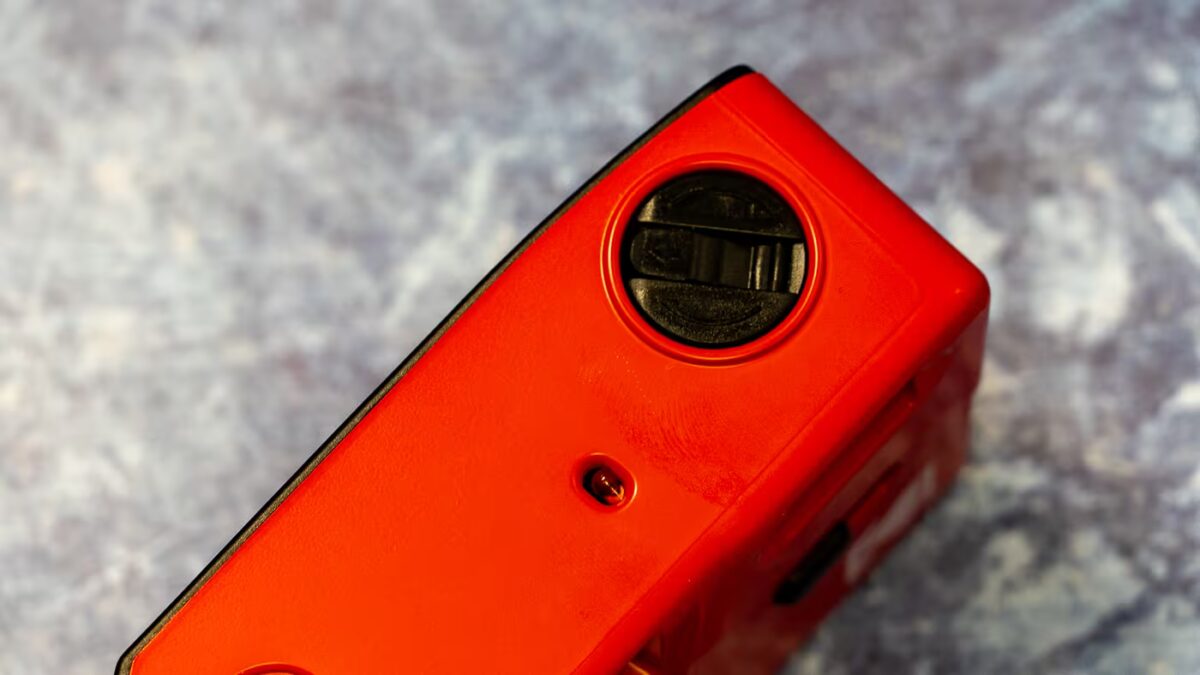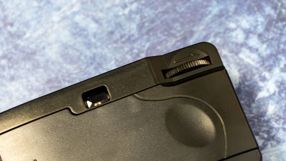 The controls couldn’t be simpler. There’s no lens cap-these days, the lens cap slider has been replaced with a flash activation switch. You get a basic viewfinder, flash, shutter button with frame counter, battery compartment, and a manual film advance wheel. Plus a rewind dial at the bottom. Nothing more, because that’s all you need.
