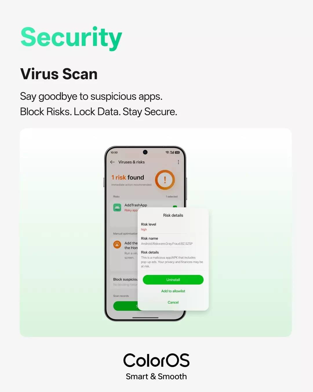 The new virus scan feature in ColorOS 16 automatically detects potentially harmful apps such as malicious APKs or those showing intrusive ads. It informs users about the risk level and enables quick app removal directly from the scan interface-eliminating the need to dig through settings or rely on third-party security apps.