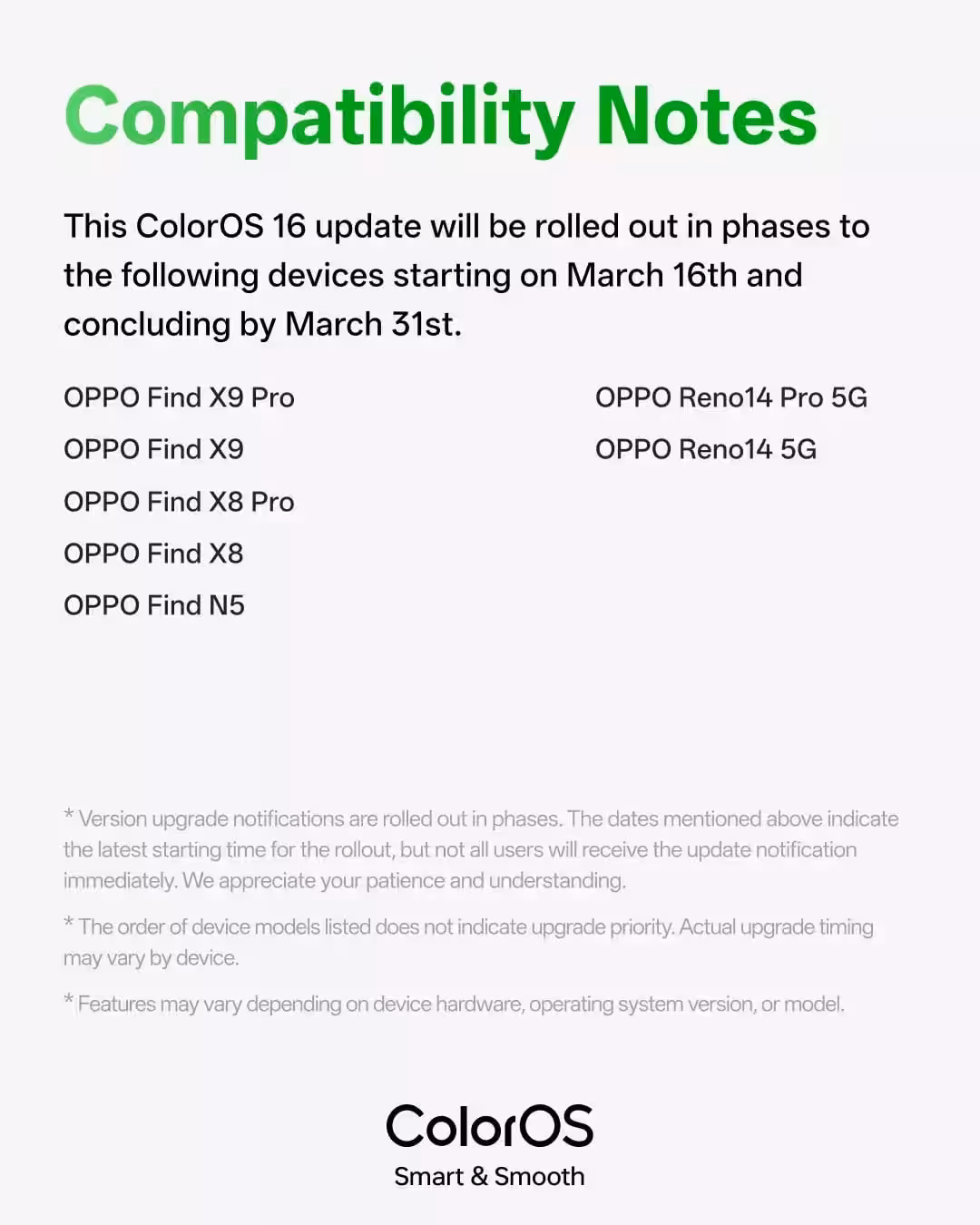 The update is hitting a range of OPPO devices, including: