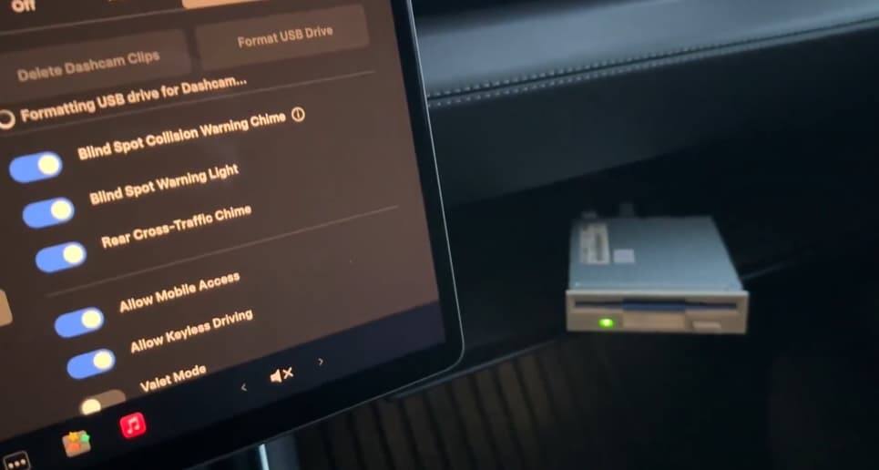 A Tesla has now been tricked into recognizing a 3.5-inch floppy disk drive – and even playing music from a diskette – after engineer Oleg Kutkov plugged the old-school hardware into the car through a USB adapter in the glovebox. No hardware mods, no teardown, no drama: the car’s Linux-based operating system just accepted it. The stunt is useless in any practical sense, which is exactly why it works as a demo of how flexible Tesla’s software stack can be.